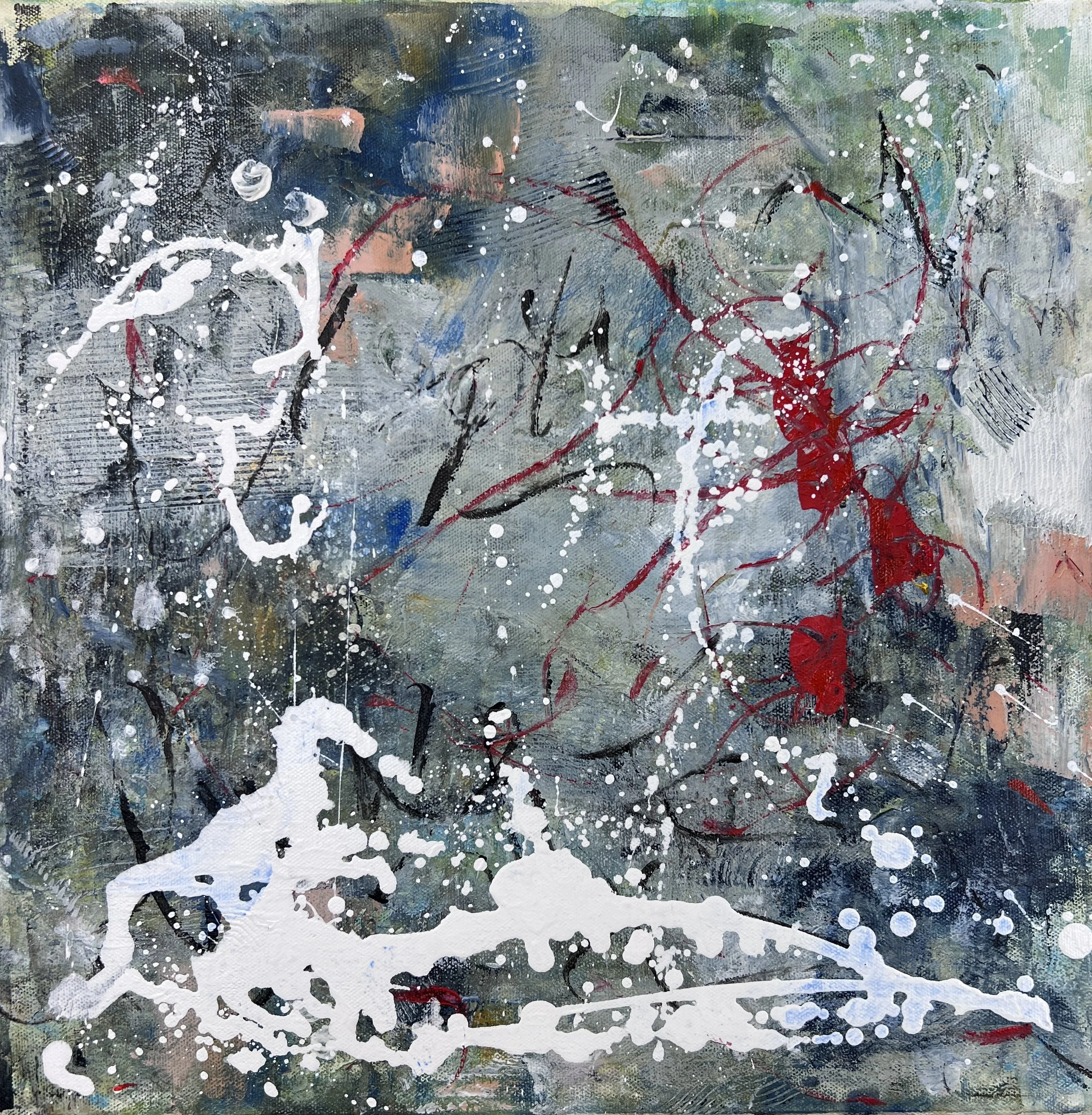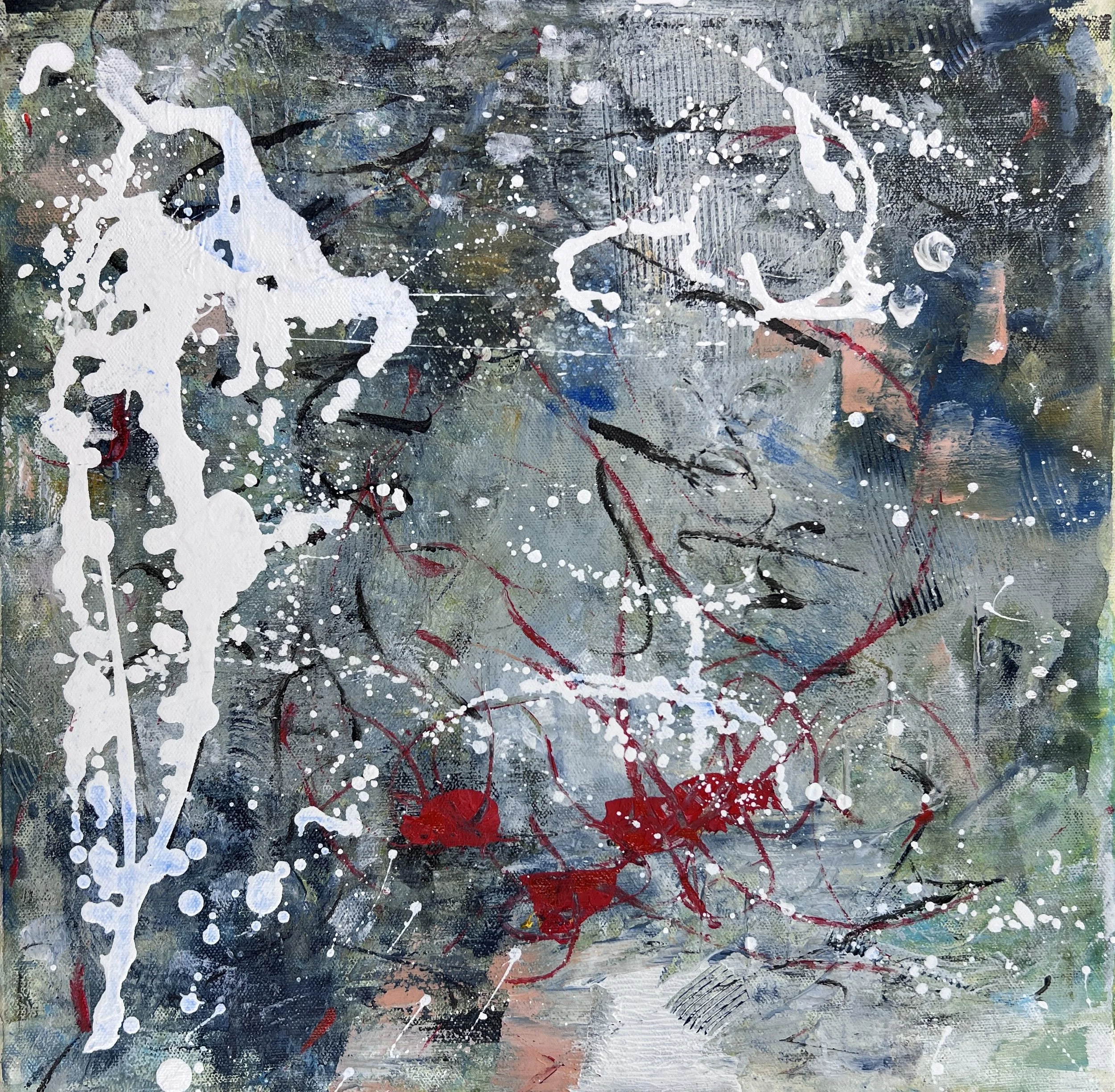 “Where Fire Meets Water” is a 16×16 original abstract painting framed in a modern black gallery frame. Layered textures, expressive brushwork, and a mix of cool blues, smoky grays, earthy reds, and soft neutrals create a dynamic balance of heat and calm — a visual conversation between opposing forces.